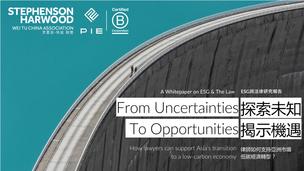 A recent whitepaper from Stephenson Harwood highlights the steps needed to accelerate the embrace of ESG in Asia and the criticality of legal services in assisting companies with this transition.