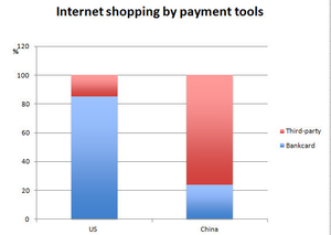 On the Chinese mainland, third-party payment tools, offered mainly by Alibaba and Tencent, made up 76% of online shopping volume in 2013, compared with only 15% in the US, where e-commerce payment is still dominated by US banks, the Goldman report noted.