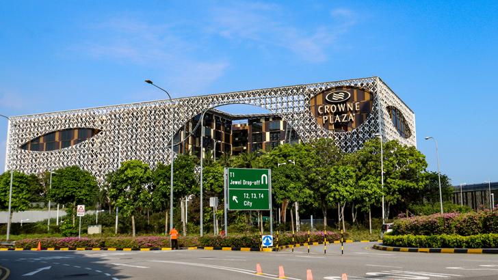 The REIT owns seven properties including Crowne Plaza Changi Airport (pictured), One Raffles Place, OUE Bayfront, and the Hilton Singapore Orchard.